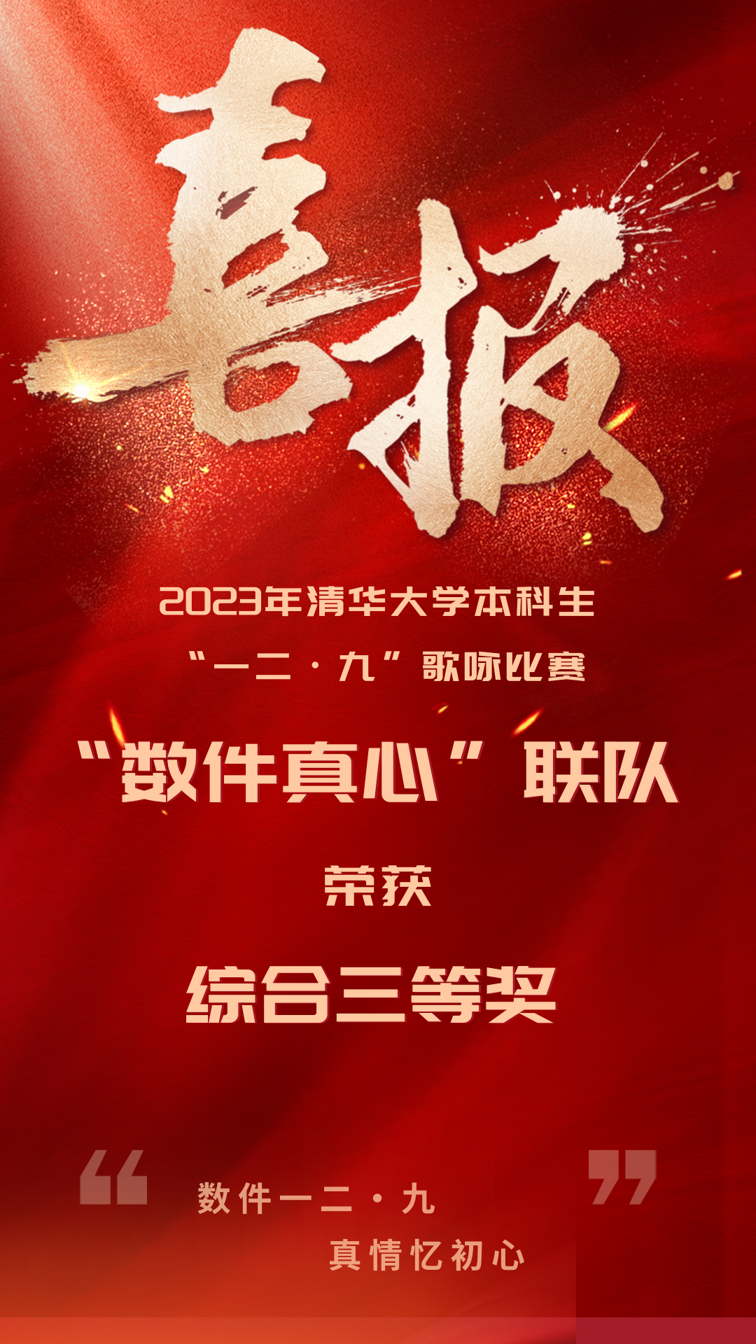 喜报|数件真心联队荣获2023年清华大学本科生“一二·九”歌咏比赛综合三等奖